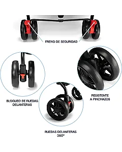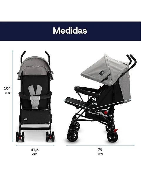 TORAL Silla de paseo ligera Florida para bebé, con respaldo reclinable 5 posiciones, capota XL, cinturón 3 puntos, 8 ruedas, silla paseo bebe desde 6 meses hasta 15 kg