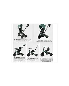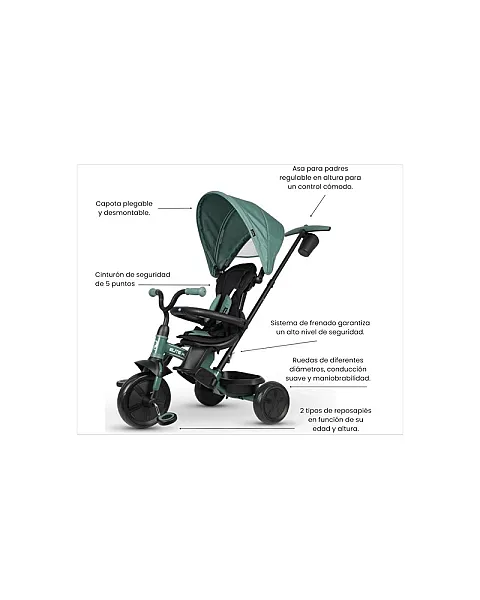 Descubre el Triciclo Evolutivo Qplay 6 En 1 Elite Verde; una opción versátil que crece con tu hij@, combinando seguridad, comodidad y estilo en cada etapa.