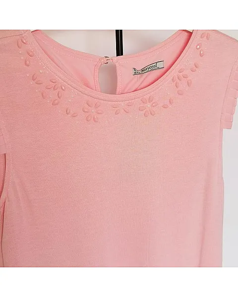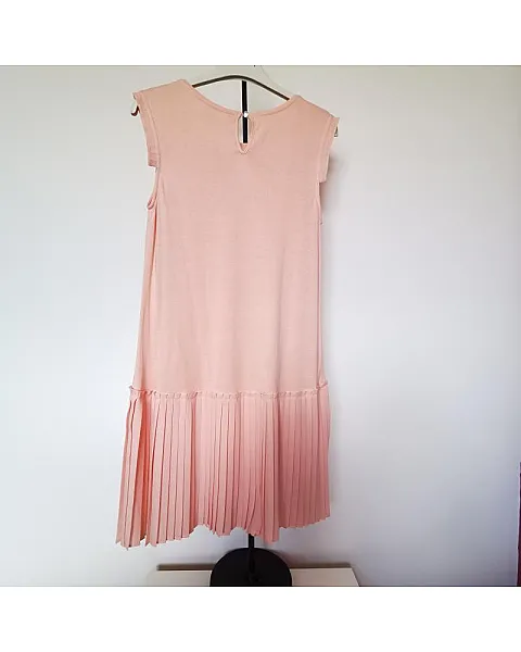 Mayoral vestido talle bajo de algodon con bonita decoracion de pedreria en el cuellov en falda y mangas son com plisado al tono del vestido.