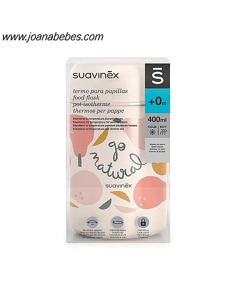 Termo para papillas 400 ml de Suavinex para transportar comidas calientes y frías, manteniendo su temperatura durante varias horas. Para Bebés +0 Meses