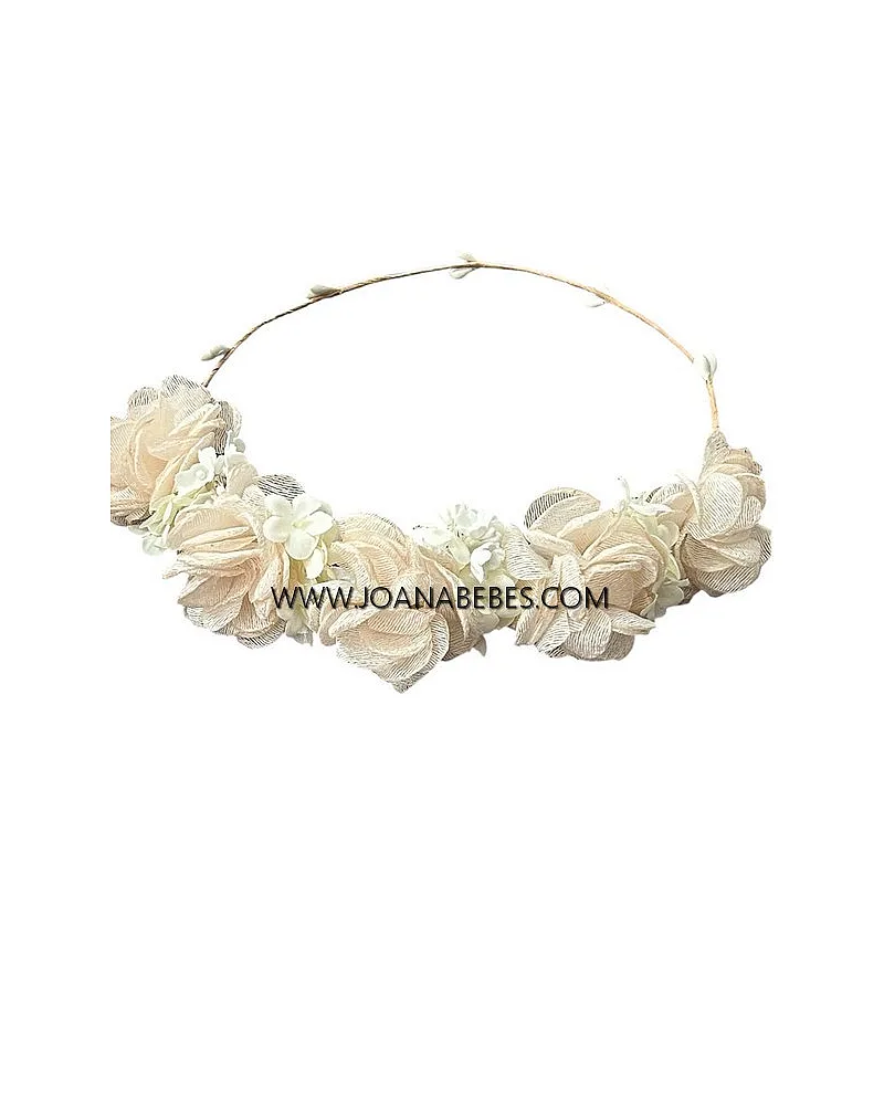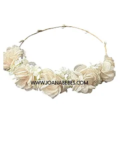 CORONA BEIG ROSA Y FLOR PEQUEÑA BLANCO ROTO