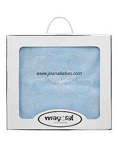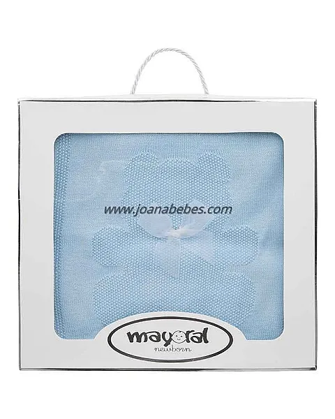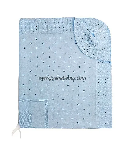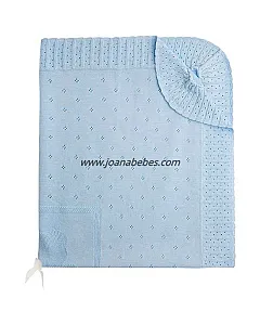 Toquilla de suave textura para el bebé confeccionado en tricotosa y punto liso. Con borde de canalé y calado por toda la prenda.