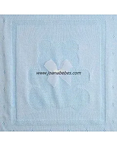 Lleva tejido un oso en el centro adornado con un aplique en lazo.