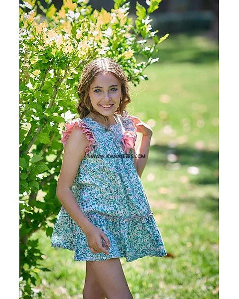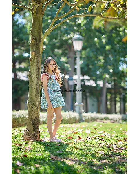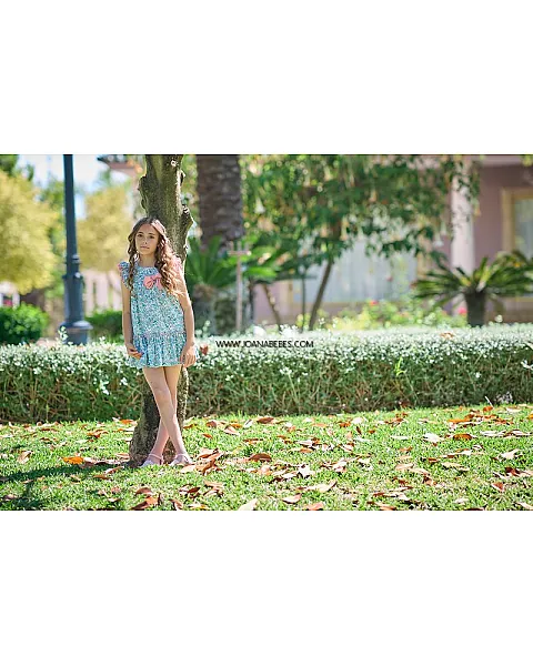 LA ORMIGA VESTIDO FLORES TURQUESAS Y ROSAS
