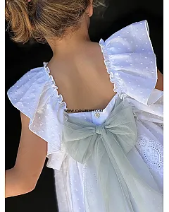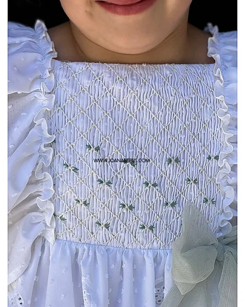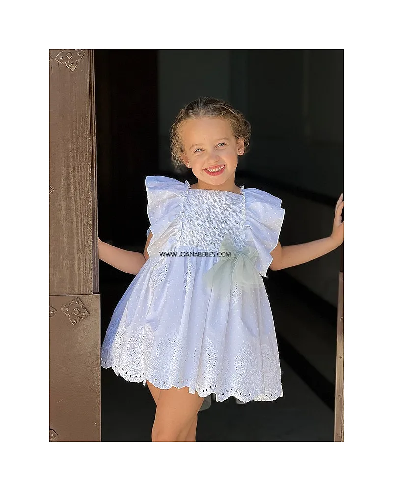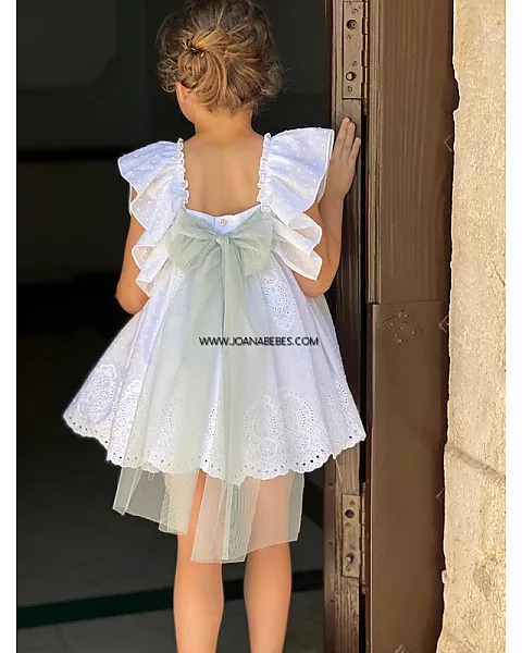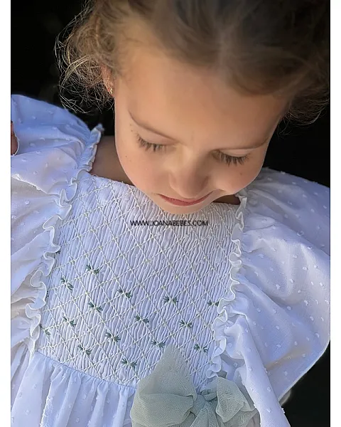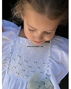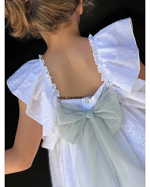 (LAZO Y DETALES BORDADOS EN AZUL, NO VERDES)