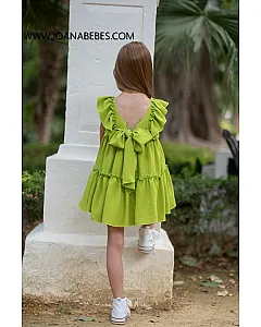 VERA VESTIDO LISO VOLANTES PISTACHO