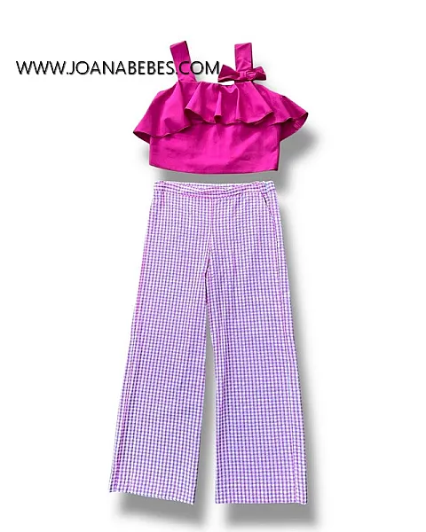 MY BELLA MOON CONJUNTO PANT VICHY Y BLUSA VOLANTE